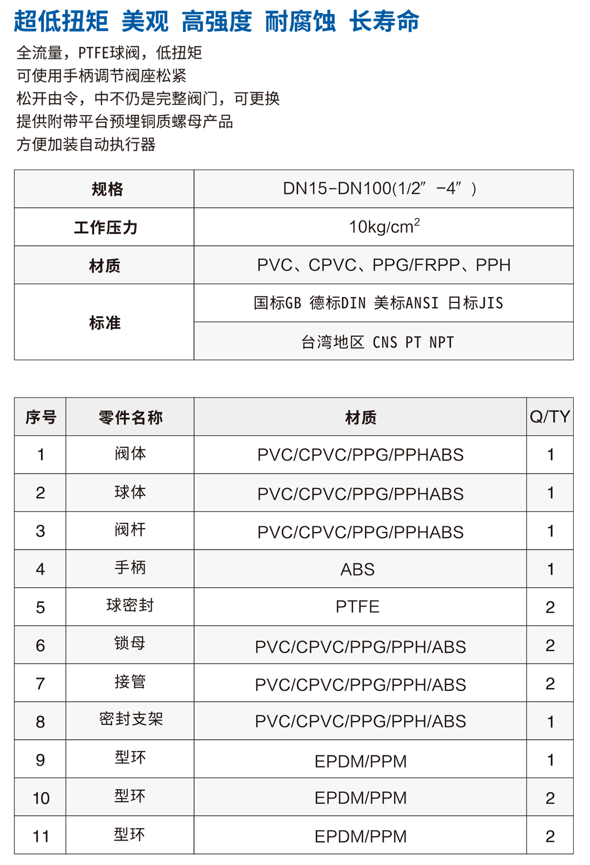 材質:PVC、CPVC、PVDF、FRPP、PPH
